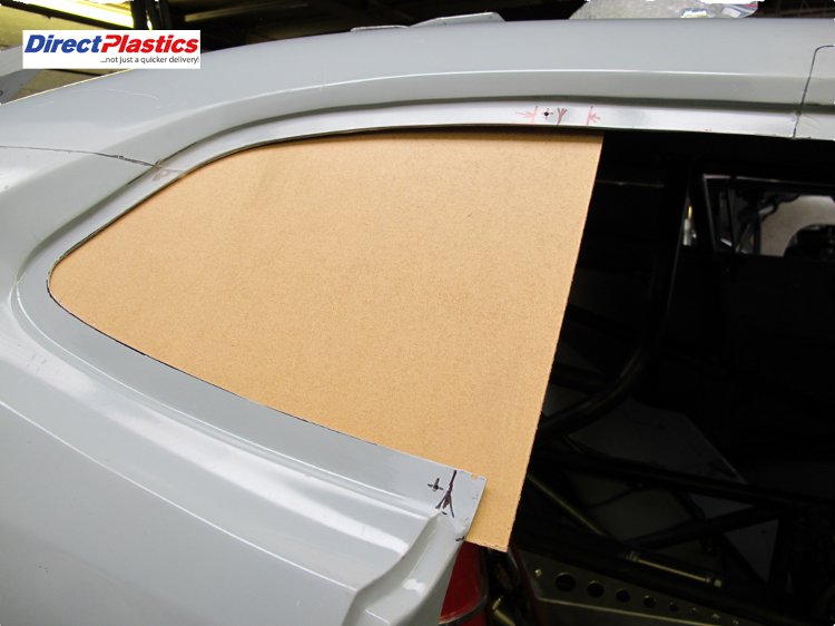 - Places his oversize hardboard blank panel on the inside of the car